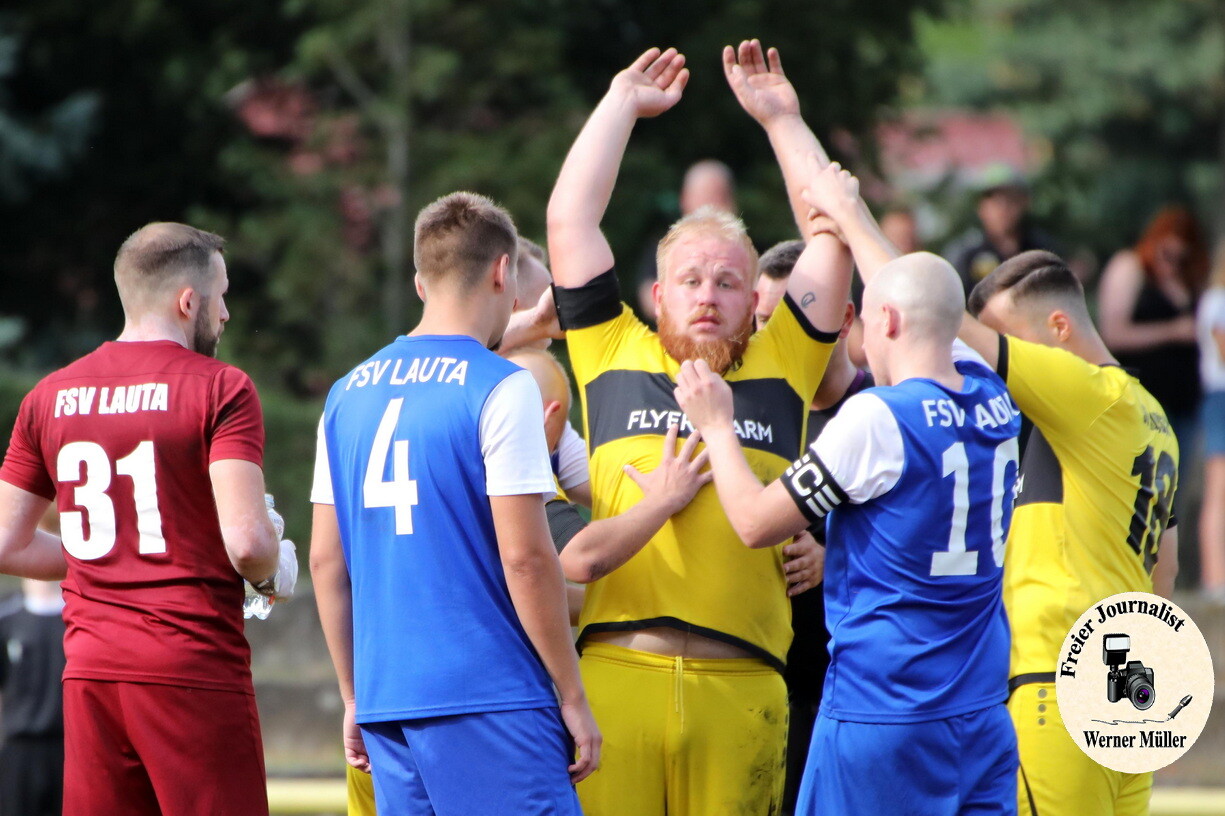 2023-08-26 SV Laiubusch in gelb - FSV Lauta in blau 1:2 (0:1)Foto: Werner Mller